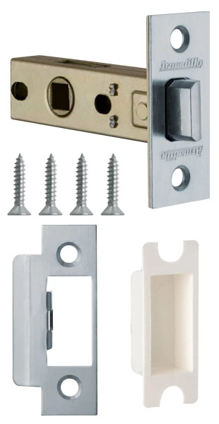 В комплект входит: защёлка, ответная планка, декоративная заглушка, комплект крепежа. Материал корпуса: сталь, материал планки и язычка: ZAMAK. Гарантия 5 лет.
